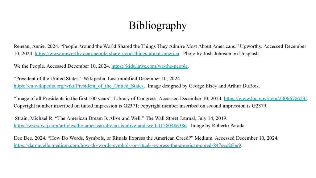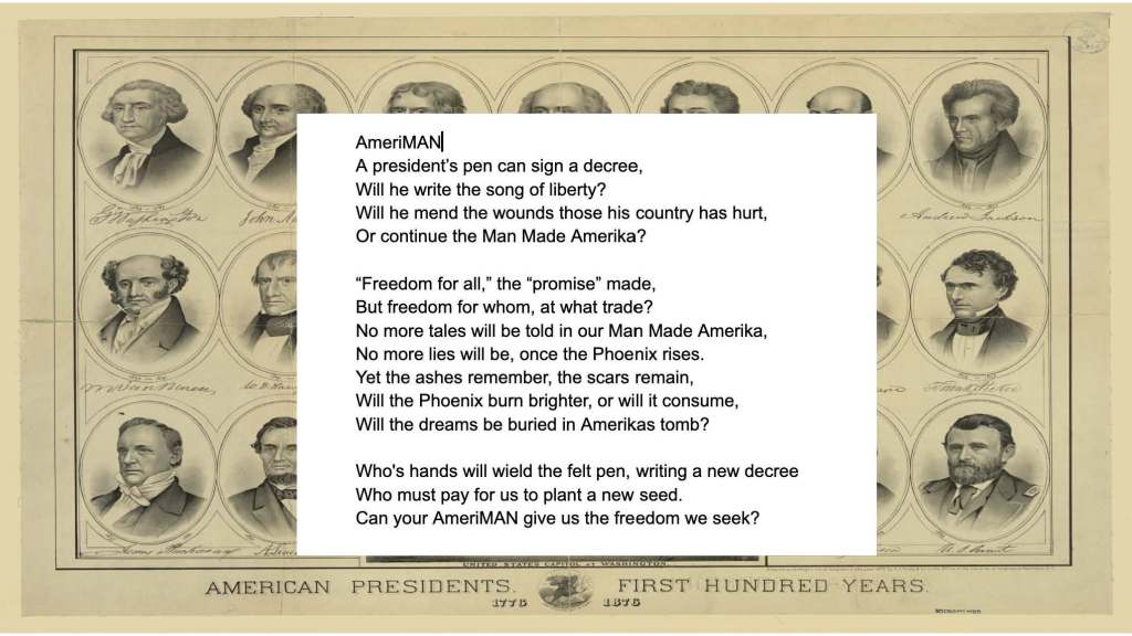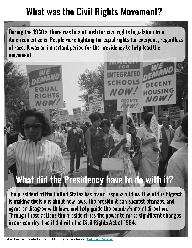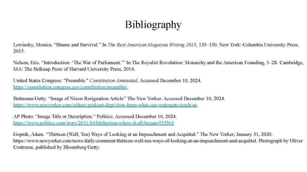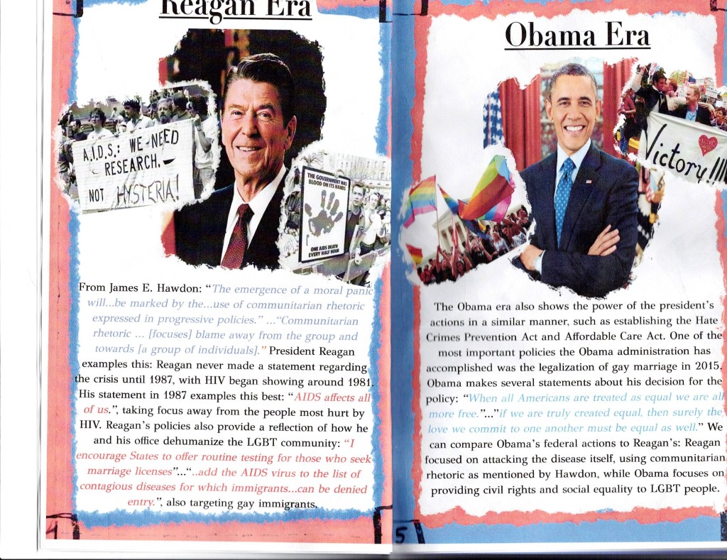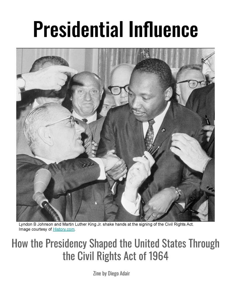 For this assignment students were asked to create a zine which responded to the question, “Why does the Presidency matter?” They were required to use two secondary sources and one primary source.